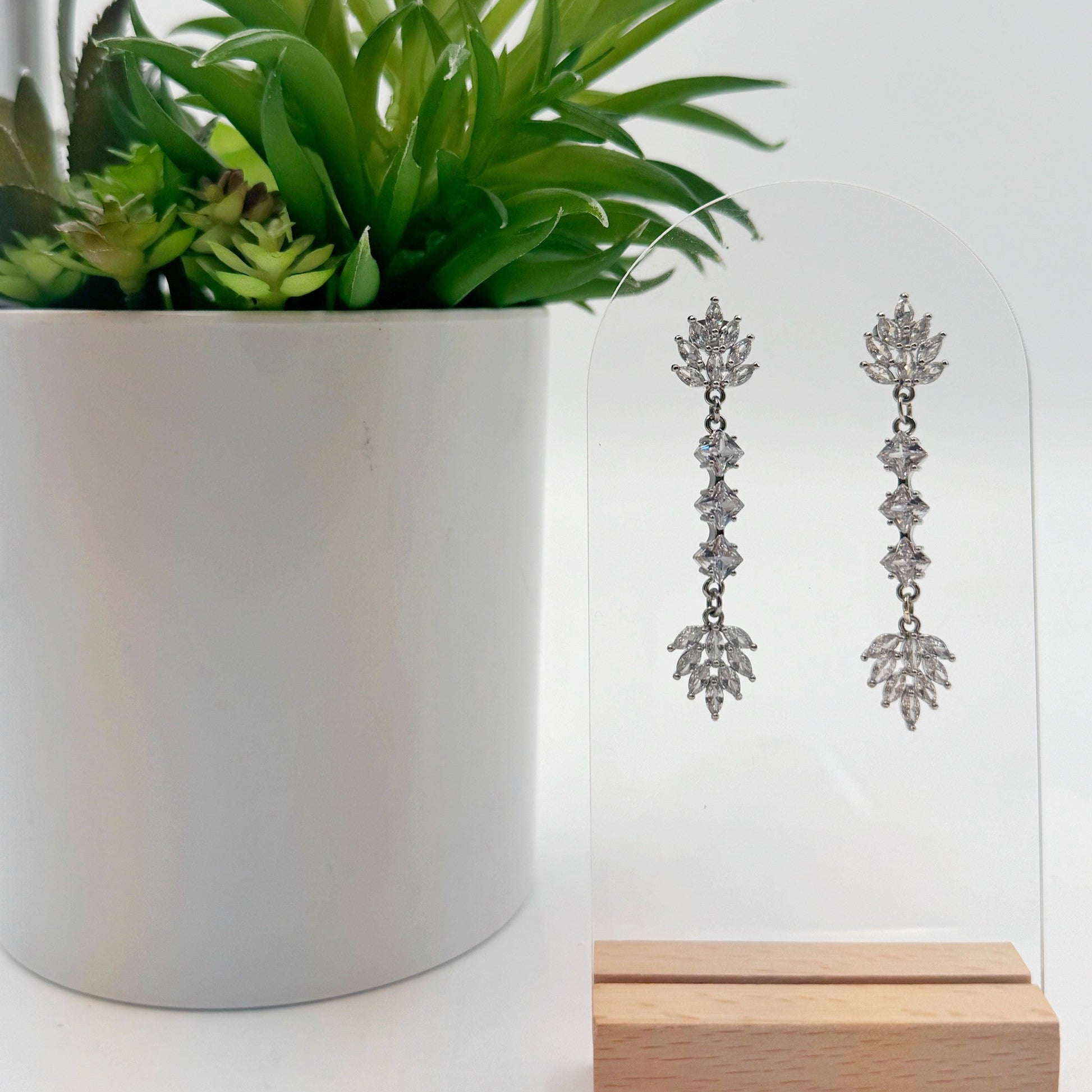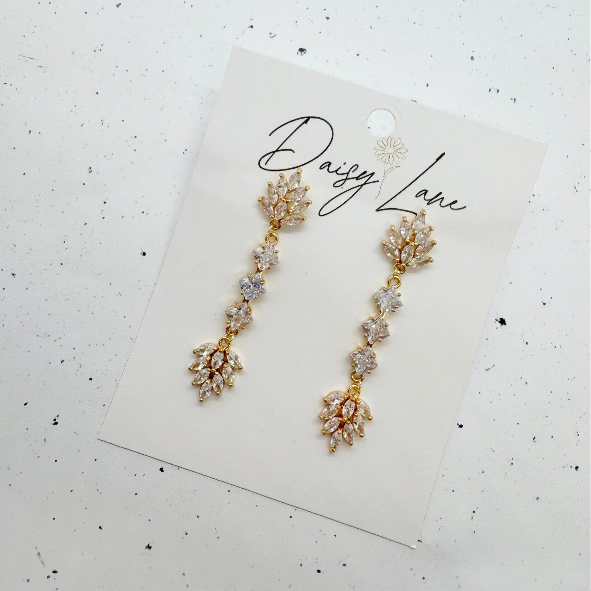 Statement sparkle without the weight. Fiona features three cascading stations of mini marquise leaves that move and catch the light with every step. Dress them up or glam up your jeans and tee!