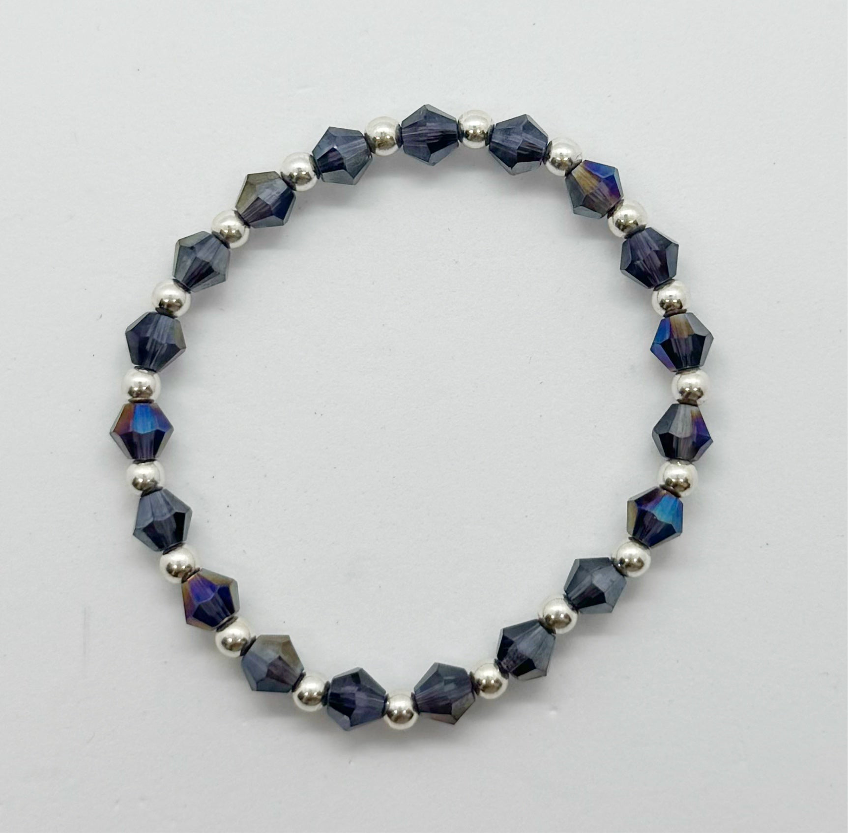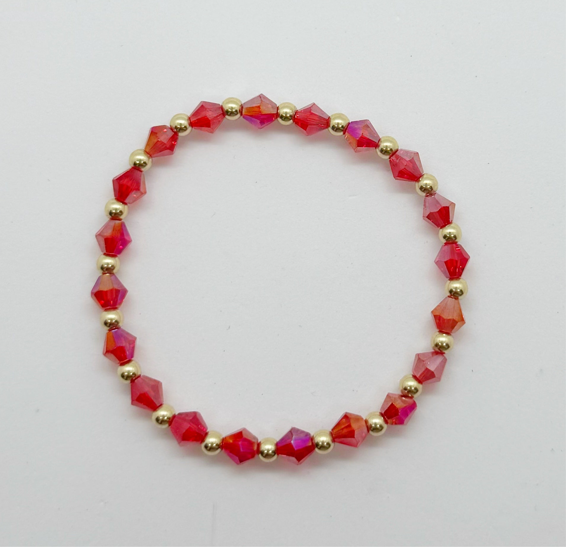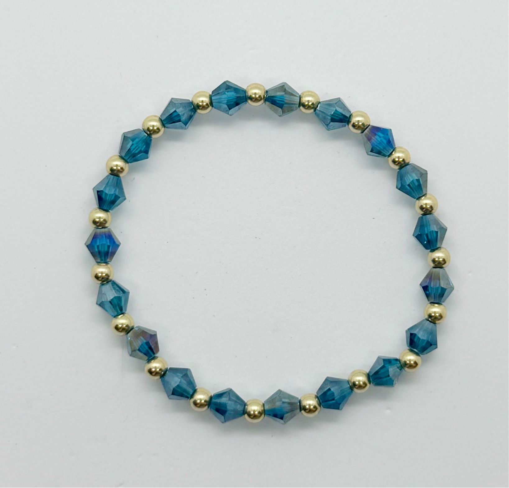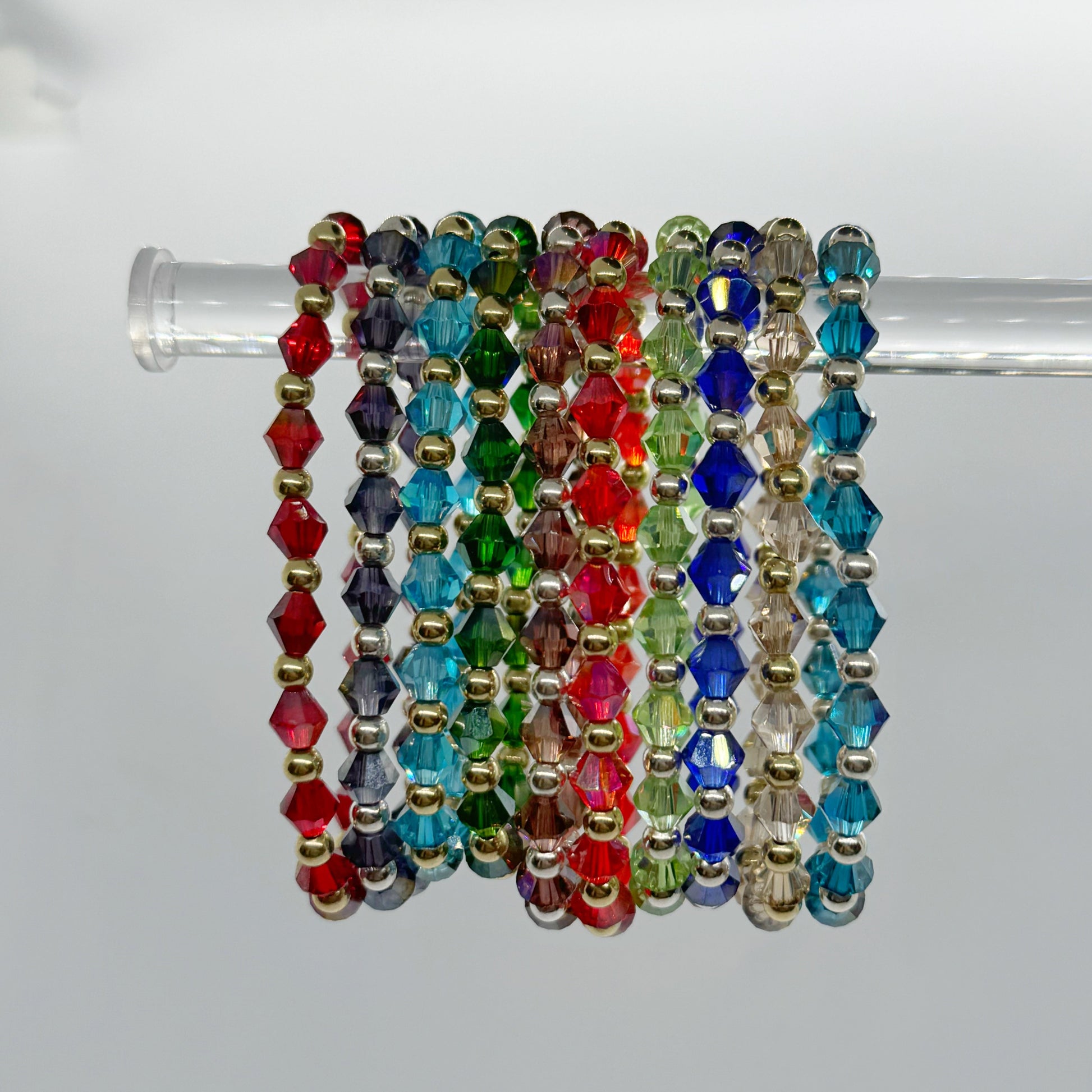 The Stella Bracelet shines with a mix gold-filled or sterling silver beads with colored crystal glass beads, creating a look that's both sparkly and elegant. Lightweight and easy to add a pop of color to your bracelet stack.