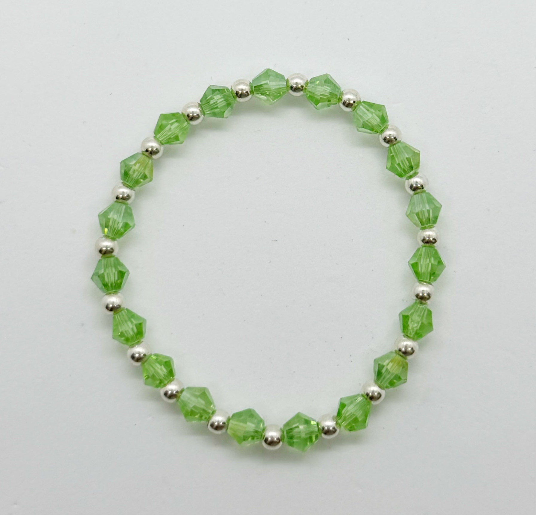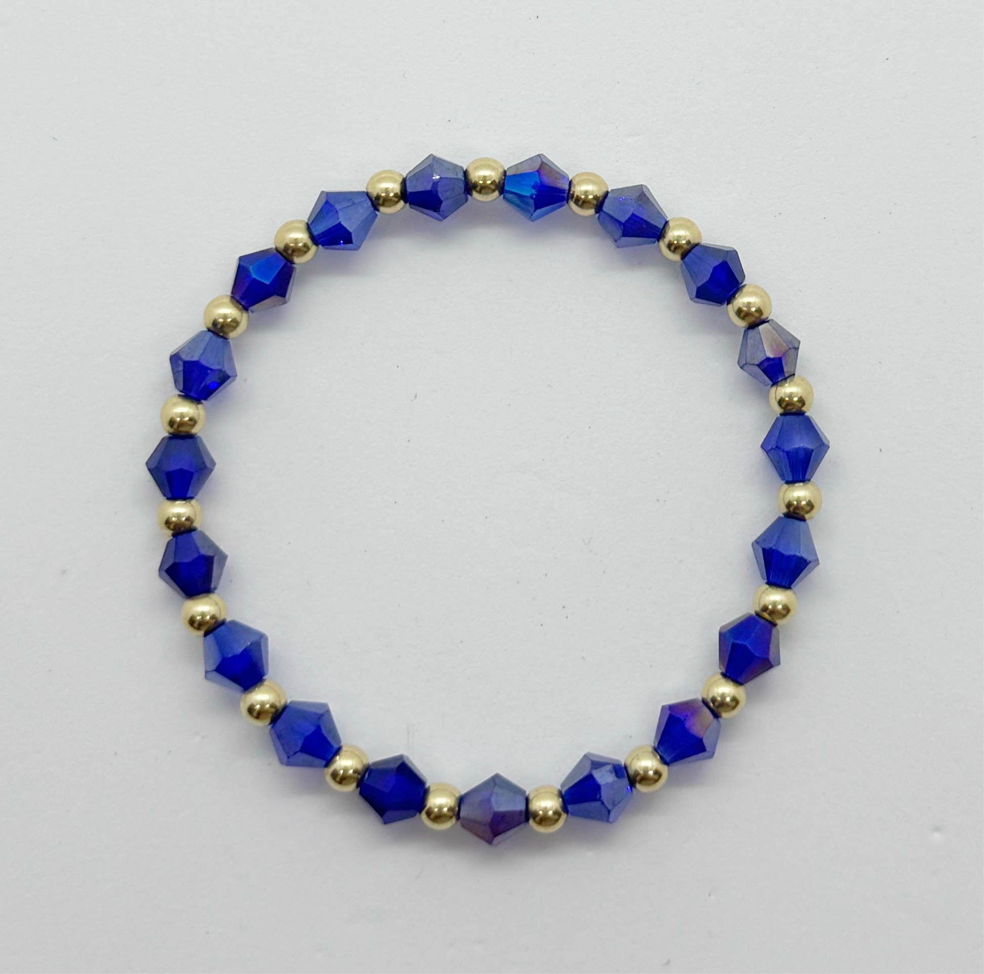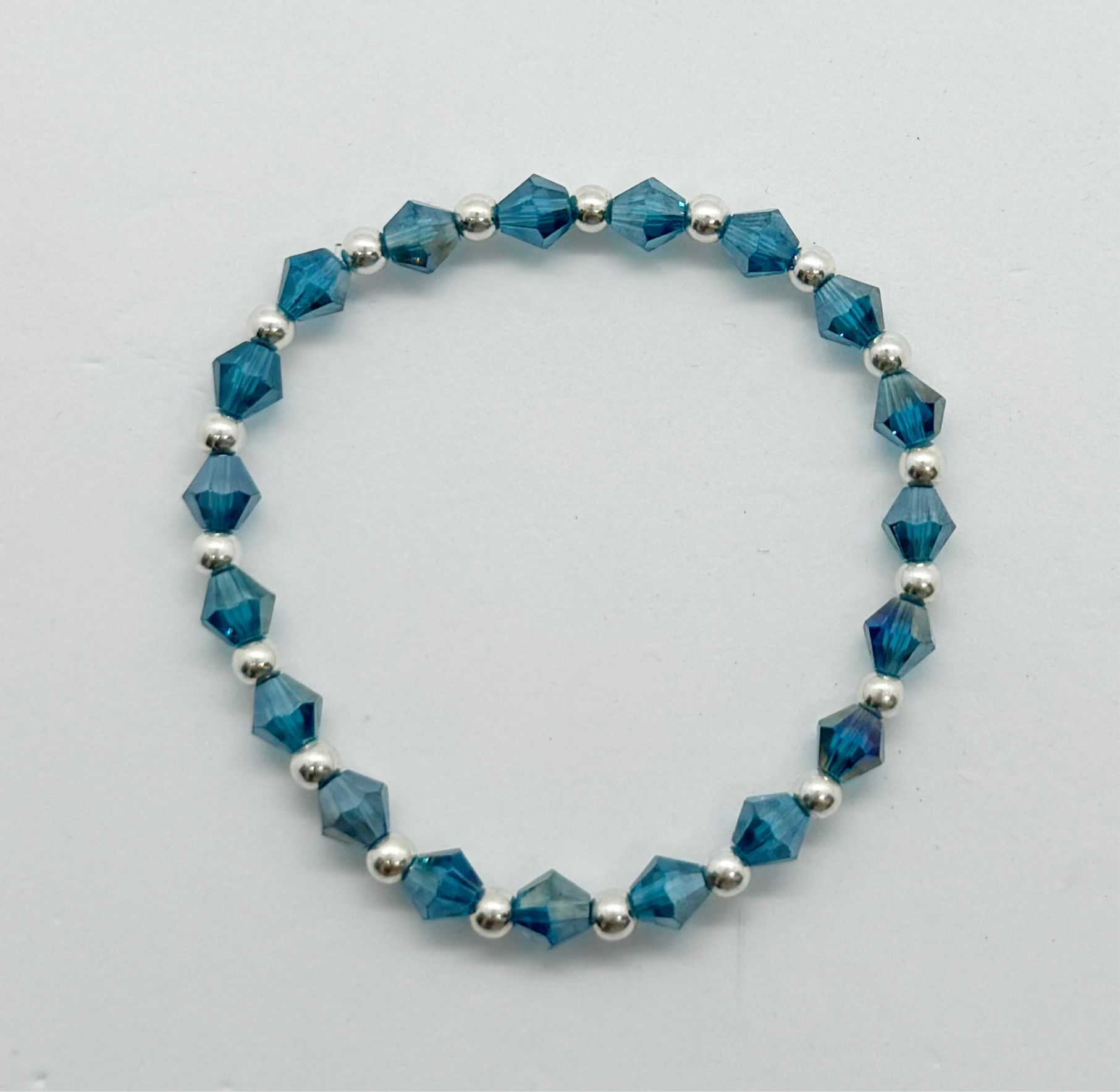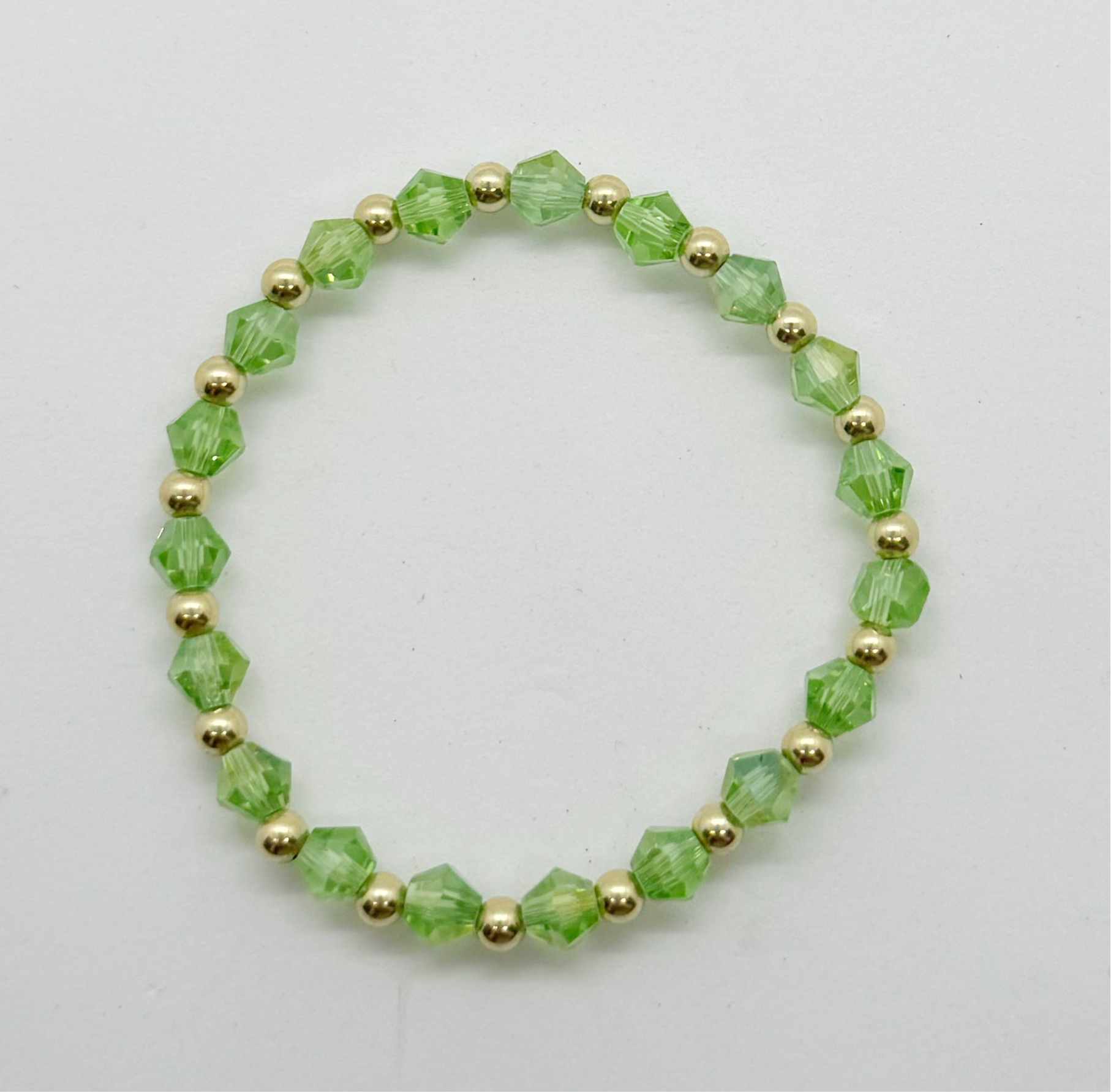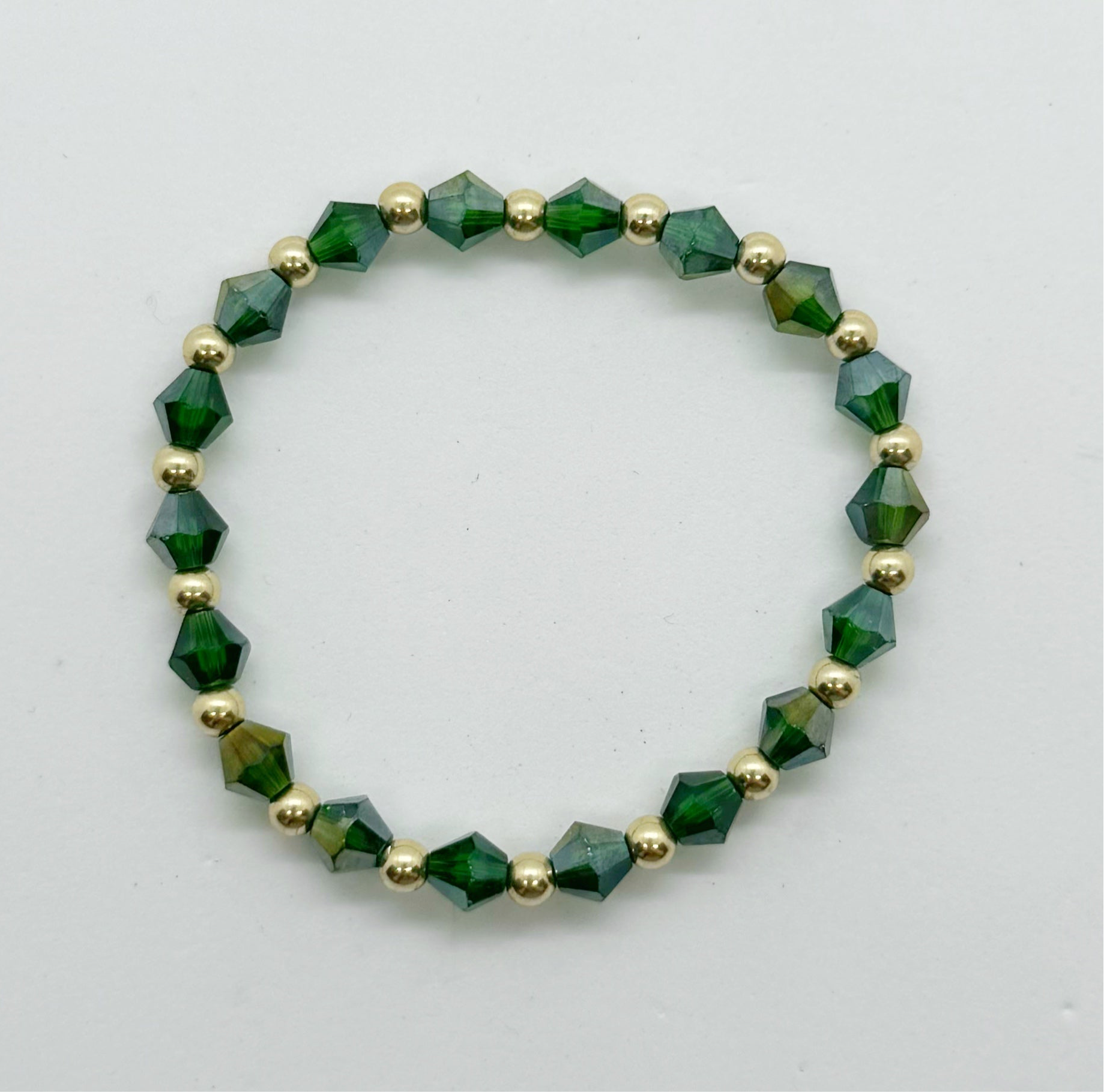 The Stella Bracelet shines with a mix gold-filled or sterling silver beads with colored crystal glass beads, creating a look that's both sparkly and elegant. Lightweight and easy to add a pop of color to your bracelet stack.